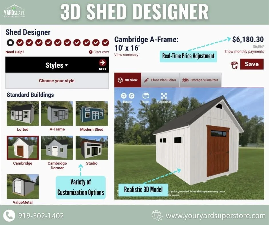 Click below to access our 3-D builder. We give you all the tools you need to design your very own metal building. We build the finest quality metal garages and carports. After your design is submitted, a representative will be in touch shortly to discuss and provide a quote.